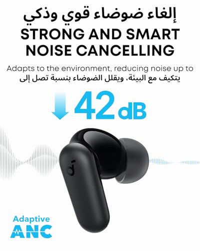 2-in-1 Charging Case and Phone Stand: Enjoy hands-free viewing without the hassle. Simply open the back panel of the case, place your phone on the stand, and catch up on your favorite shows—watching while traveling has never been easier! Strong and Smart Noise Cancelling: Reduce noise by up to 42dB with an advanced active noise cancelling system. With adaptive technology, soundcore P30i detects external sound and automatically selects a level of noise cancelling optimized for your ears Transparency Mode: Let in the world or focus on your audio, the choice is yours. Simply switch to transparency mode to hear the world around you when needed. Powerful Bass: Unleash deep, punchy bass with soundcore P30i noise cancelling earbuds' 10mm drivers, amplified by the soundcore exclusive BassUp technology for an immersive, robust audio experience. Long Playtime: Enjoy 10 hours of listening from a single charge—extending to 45 hours with the charging case. When you're short on time, a quick 10-minute charge offers 2 hours of playtime. Precise Translations in 100+ Languages:Experience Al translation in real time with soundcore P30i and view live captions in the soundcore app.