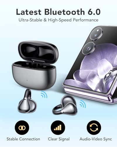 【Open - Ear Headphones】Our open-ear design earbuds offer a breathable and open fit with nothing inside your ears. Experience unmatched comfort and enjoy all - day safe listening without ear fatigue. These open ear headphones are designed for everyday use. 【Safety & Connection】The ergonomic design of these clip on earbuds accommodates different auricle shapes, delivering a comfortable and stable experience. They provide quality audio while keeping you connected and aware of your surroundings for ultimate safety. 【12mm Dynamic Drivers】The powerful 12mm dynamic driver system, through precise adjustment and professional testing, brings you more beautiful and transparent sound effects. It restores various rich details of the sound, enhancing your listening experience with these Bluetooth headphones. 【Latest Bluetooth 6.0】Equipped with Bluetooth 6.0 technology, the open ear earbuds provide stable wireless connectivity and reliable audio transmission, making them the perfect choice for your daily use. 【20 Hours of Music & Calls】Enjoy 20 hours of music, calls, and podcasts with our open headphones. Perfect for workouts and commutes, Zero-Pressure provides comfort from sunrise podcasts to midnight beats.