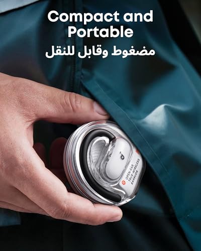 Sleek, Future-Ready Design: The clear charging case features powerful magnets to prevent accidental loss and a light bar to keep you informed. Enjoy your music in style wherever you go with the compact, portable, and futuristic design. Stay Comfortable, Stay Connected: V40i's open-ear headphones free you from in-ear pressure and a fit that's too tight, ensuring breathable, all-day comfort while keeping you aware of your surroundings. Fit for Every Ear: soundcore's innovative 4-level adjustable ear hooks enable a comfortable fit tailored to over 99% of ear shapes and sizes. Closer to Your Ear Canal for Deeper Bass: Adjustable ear hooks bring sound closer to your ears, delivering deep, powerful bass. Experience bass that's up to 7.5 dB louder than with non-adjustable hooks to enjoy richer, punchier audio. Note: Data from the soundcore lab. Hear Every Note: Feel the power in every beat, even in noisy environments. With 16 × 13-mm drivers, a high-elastic diaphragm, and an hourglass-shaped chamber, V40i open-ear earbuds deliver loud volume and punchy bass. Crisp, Clear Calls: 4 microphones and advanced AI work together to filter out external noise for crystal-clear calls. Be heard loud and clear no matter where you are, for conversations that sound like they're face-to-face.