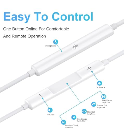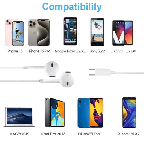 Type C Headphones Wired - USB - C Wired Earphones with Mic & Volume Control, Noise Cancelling Headset Compatible for iPhone 16/15 Pro Max, iPad, Galaxy S25/S24/S23/S22/Ultra Note 10/20, Pixel 7/6/5/4