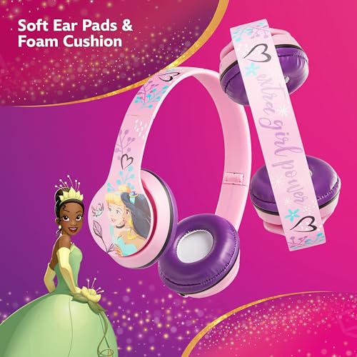 Disney Princess Bluetooth Kids Headphones – Wireless Over-Ear Headset with Safe Volume 85dB, Foldable Design, AUX & TF Support, 13H Playtime – For Girls Ages 3 & Up
