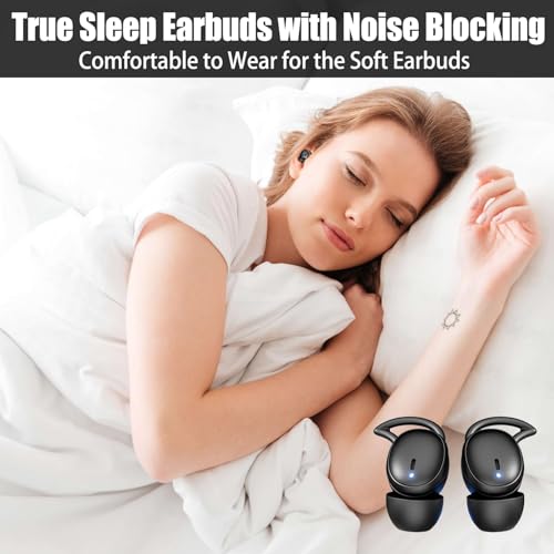سماعات اذن بلوتوث 5.4 صغيرة بخاصية الغاء الضوضاء للنوم الجانبي، سماعات لاسلكية مقاومة للماء للسفر والارق والاسترخاء، تصميم صغير (اسود)