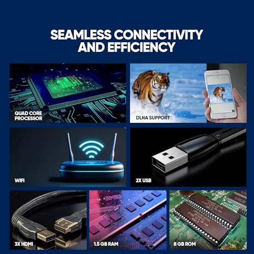 ●Immersive 4K UHD Clarity with Ultra Slim Frame: Enjoy incredible picture quality with 3840 x 2160 resolution on a large 65-inch screen. The ultra-slim frame enhances the viewing experience, creating a cinematic feel right in your home. ●Android OS with Smart Apps (Netflix, YouTube, etc.): Powered by Android OS, this smart TV provides access to popular streaming apps like Netflix and YouTube, allowing you to enjoy a wide range of content directly on your TV. ●Powerful Quad-Core Processor with Ample Storage: Equipped with a quad-core processor, 1GB RAM, and 8GB storage, this TV offers fast performance and smooth navigation, making multitasking and app browsing seamless. ●Smart Connectivity with Built-In Wi-Fi & DLNA Support: Built-in Wi-Fi and DLNA enable easy browsing and media sharing across devices, enriching your home entertainment options. ●Versatile Connectivity with HDMI, USB, and More: Connect multiple devices easily with 2 HDMI inputs (one MHL 2.0 compatible), 3 USB ports (one USB 3.0 compatible), 1 PC-RGB input, and more. Wi-Fi and various AV inputs offer a comprehensive setup for all your entertainment needs. ●User-Friendly OSD with Multi-Language Support: On-screen display (OSD) offers language options like English, Arabic, French, Hebrew, and Persian, making it easy for all users to navigate settings and features.