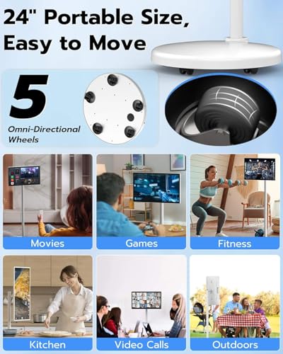 24 Inch Rolling Smart TV with 1080P Touch Screen | Android 13 OS | MTK 8-core CPU | 6G+128G Storage | Built-in 13MP Camera | Remote Voice Control | Full Rotation Portable TV on Wheels
