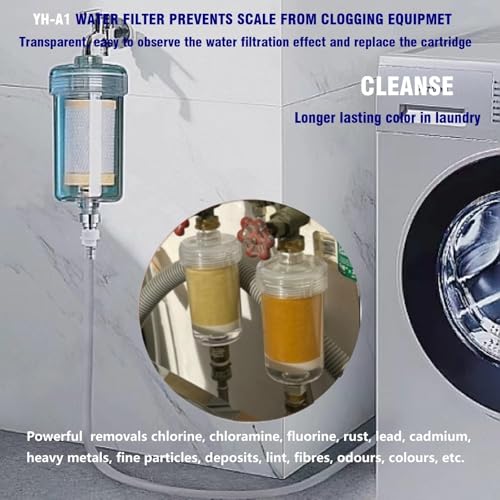 ADVANCED 1 μ𝐦 WATER FILTER:The core of a water filter filtration effect depends on the filter cartridge,ZHYUUAX water filter adopts multi-stage activated carbon + carbon fiber + PP cotton, innovative combination technology, multi-layer composite 1 μ𝐦 precision filtration, soften hard water, impede scale, suitable for well water and tap water DESIGNED FOR SKIN CONDITIONING: YH-A1 precision cartridge can remove more > 99.5% of chlorine, chloramine, fluorine, rust, lead, cadmium, heavy metals, fine particles, alkalize water, microplastic, sediment, fluff, fiber, odor, pigment and so on. Can truly moisturize itchy, red, eczema-prone skin. Improves damaged scalp and hair, reduces dandruff, BPA free HD WATER FILTER ADVANTAGES: a. 1 μ𝐦 water filtration . b. 6.7'' Large capacity. c. Innovative filter combination technology. d. High flow rate of 10 GPM, internal activated carbon activation, external carbon fiber and pp cotton adsorption. e. Repairing the skin. f. With waterproof ring, will not leak. g. Transparent tube wall made of 80 lb. impact and pressure resistant material, easy to recognize water filtration. h. After 3-5 months to replace the cartridge,money-saving. i. Equipped with brass inlet connector to avoid inlet pressure loss and improve sealing MULTI-SCENARIO APPLICATIONS:installed water filtration at washing machine water filter, garden hose water filter, water filter for washing machine, washer water filter, swimming pools filter, water softener for washing machine, chlorine filter for washing machine . Can also be used as inline water filters for washing machines, pump, boiler, water heaters, smart toilets, pressure washers, RV, car wash, spa, boat, swimming pool inline water filter, etc. The inline washing machine filter Laundry color is long lasting and glossy EASY TO INSTALL, REUSABLE EXPERIENCE : Inline washing machine filter suitable for use in US standard 1/2'' NPT and 3/4'' GHT twist-in internal and external threaded water-using equipment. Working pressure range: 0.2-0.4 MPa, strictly prohibited > 0.7MPa. No tools are required to install or replace the washing machine filter cartridge, Installation can be easily accomplished by directly screwing in and out the positive and negative threads with both hands POWERFUL MULT-STAGE WATER 1 μ𝐦 FILTRATION TRANSPARENT AND EASY TO SEE:The washing machine water filter contains a handmade composite cartridge that holds 12000 gallons of water for deep 1 μ𝐦 filtration without lowering the TDS or containing calcium sulfite, adsorption, activation, purification capacity is more than 5 times of other ordinary single-layer PP cotton and steel mesh washing machine water filter or double-layer carbon shower filter. If you have any installation-related questions, please contact us. GIFTS TO PAMPER YOUR FAMILY --- suitable for middle-aged and elderly people, women, mothers, girls, outdoor travel, campers