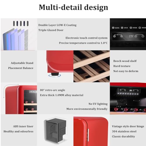 electric wine chiller -- Preserve the quality and taste of your wine, ensuring you can enjoy its true flavors even after years of storage. high volume -- The versatile shelf design allows you to store up to 20 bottles of wine, giving you the flexibility to organize and display your collection however you prefer. accurate temperature control -- Our advanced technology minimizes changes in humidity, creating the perfect environment for your wine collection and preventing cork damage. intelligent thermostat -- Our unique technology maintains a constant temperature, protecting your wine from damage and maintaining its optimal taste. noise reduction operation -- Our mini refrigerator freezer uses the most energy-efficient compressor on the market, delivering ultra-low vibration and whisper-quiet operation for ultimate convenience.