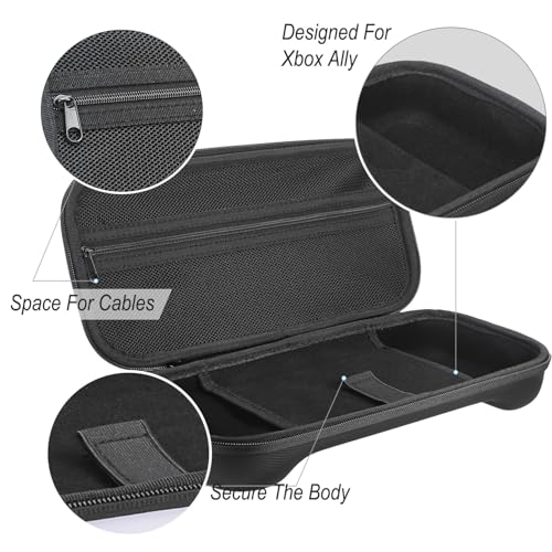 【Compatibility】 Specifically designed for 2025 ROG Xbox Ally & ROG Xbox Ally X (7 inch). 【Basic Info】 Three-layer composite material with an EVA middle layer for enhanced impact protection, Color: Black, Size: 31.1 x 15.8 x 7.5 cm, Weight: 310 g. 【Slim & Compact Design】 Designed for ultimate portability, this case securely holds your ROG Xbox Ally/Ally X console, game cartridges, and core accessories. Please note: Its slim design excludes the bulky power adapter for maximum portability. 【High Quality Material】 Crafted from high-density EVA material, this case not only looks sleek but also offers robust protection against scratches, impacts, water and dust, ensuring your ROG Xbox Ally/ Ally X stays safe and stylish, wherever you go. 【Velvet Interior】 Ultra-soft velvet lining protects your ROG Xbox Ally / Ally X and accessories from scratches, bumps, and drops.
