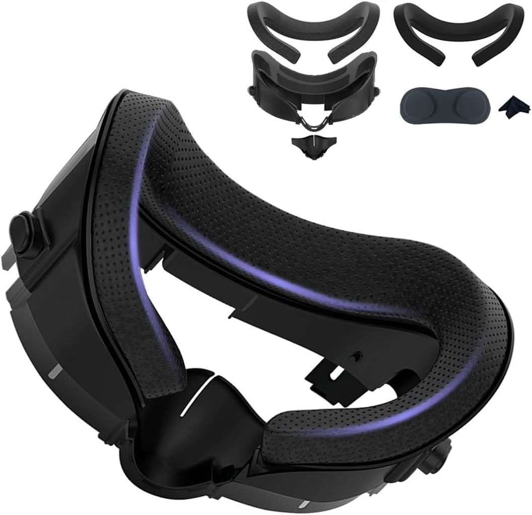 واجهة وجه ووسادة وجه متوافقة مع ملحقات اوكيولوس/ميتا كويست 3، وسادة اسفنجية بديلة، مضادة للتعرق، غطاء وجه سيليكون مضاد للتسرب ووسادة واقية للانف من اكسيسين، أسود