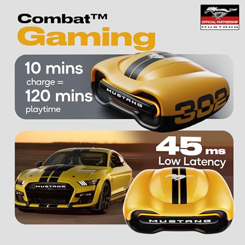 GOBOULT x Mustang Collaboration Experience the ultimate fusion of world-class design, advanced technology and exhilarating speed. Inspired by the Ford Mustang, these headphones offer an iconic aesthetic with cutting-edge audio performance. Amp App Connectivity: Customize your sound with the Amp app. Customize EQ modes, assign touch gestures, and ensure optimal performance with the Quick Clean feature. Zen Quad Mic ENC: Advanced Environmental Noise Cancellation (ENC) with four microphones ensures crystal clear calls even in noisy environments. 60 HOURS PLAYTIME - Extended battery life up to 60 hours, keeping your music and calls uninterrupted during long trips or gaming marathons. 45ms Low Latency Gaming: Ultra low latency (45ms) for lag-free gaming and real-time audio synchronization, ensuring a smooth competitive advantage. Blink & Pair BT 5.4: Instant automatic pairing with the latest Bluetooth 5.4 for stable, high-speed connectivity and low power consumption. Dynamic EQ Modes: Sharpen your sound experience with multiple EQ modes, adjust bass, treble and midrange for an immersive listening session.