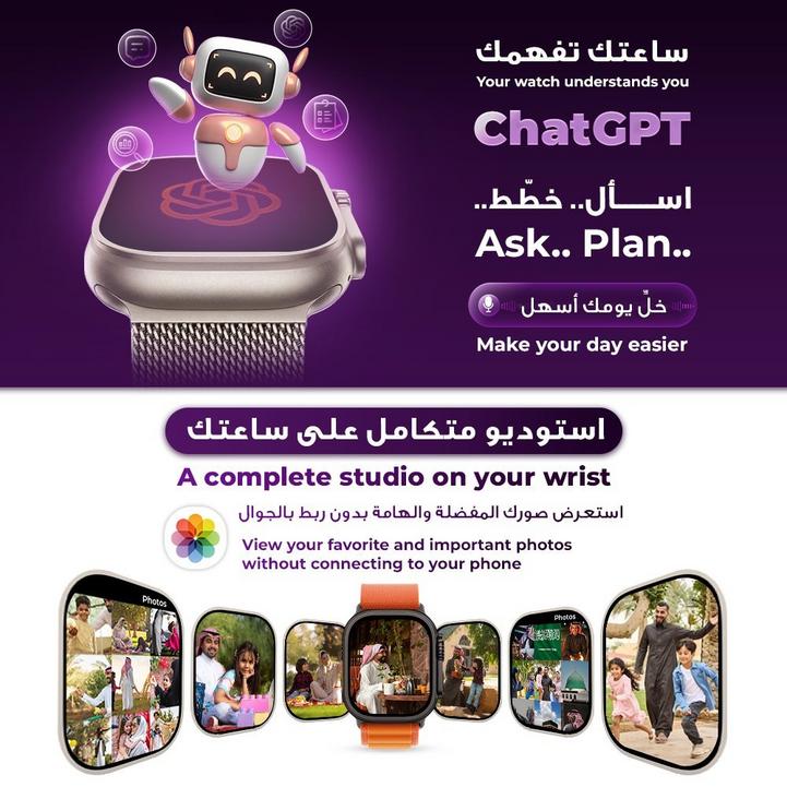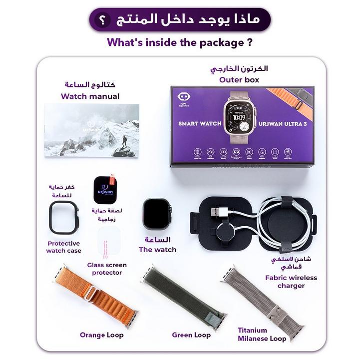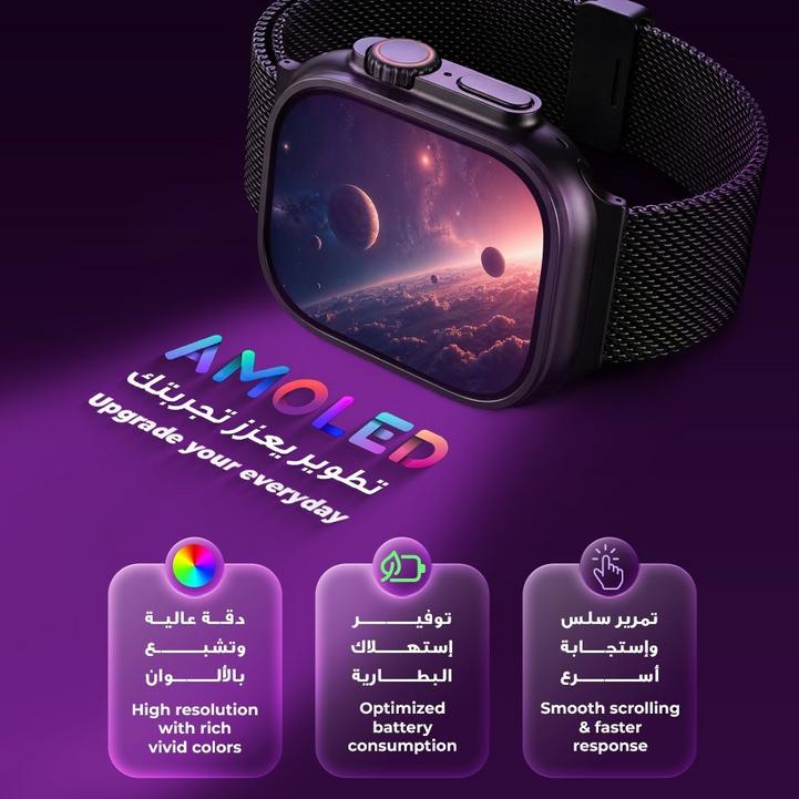 Ultra 3 Smartwatch (Brand New) – Silver: AI with ChatGPT, AMOLED Display for Vivid Colors, Photo Viewing Feature, Dedicated App for Perfect Control, Notifications & Calls Support, Water Resistance, with 3 Premium Straps.