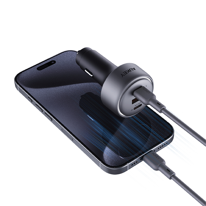 AUKEY Pathfinder Mix 3 Fast Charging Car Charger, 100W, Gray