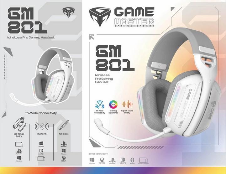 Game Master, Gaming headset, Wireless with Mic, Multi use, White