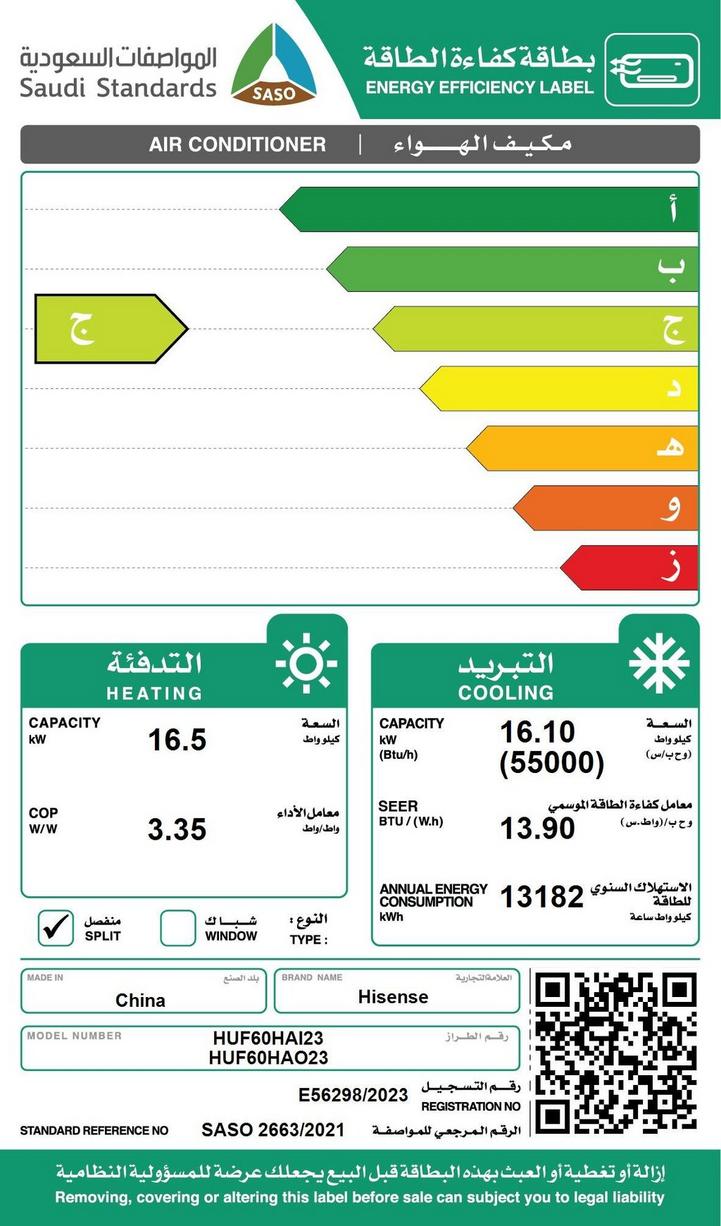 Hisense Floor Standing AC,DC inverter, 55,000 BTU, Wi-Fi, Hot and Cold.