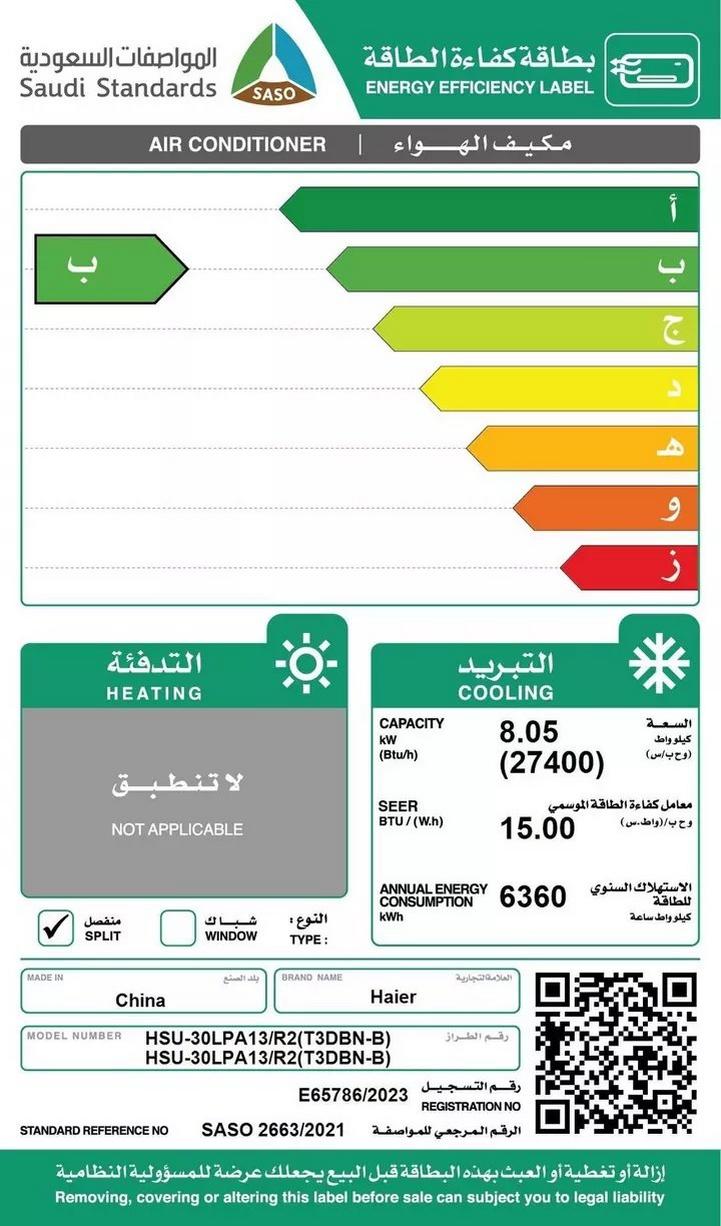 Haier Split AC 27,400 BTU, Cool Only, High Efficiency Inverter UVC Smart, Wifi