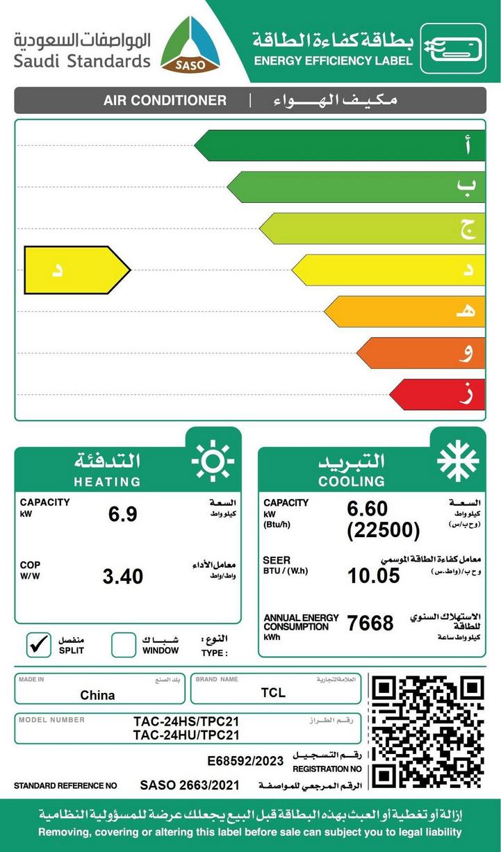 TCL Split AC, BreezeIN 22,500 BTU, Cooling & Heating, WiFi