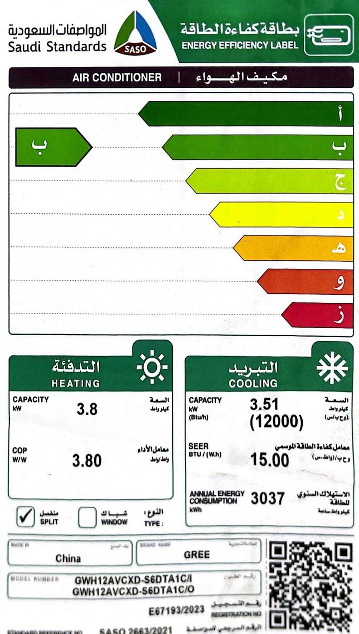 Gree Split Air Conditioner, 12,000 BTU, Heating & Cooling, AI-PRO, Inverter, Wifi