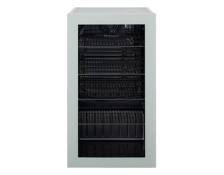 Platinum Beverage Cooler, 92 Ltrs, Mini Fridge, Glass Door, 4 Shelves, Color Gray