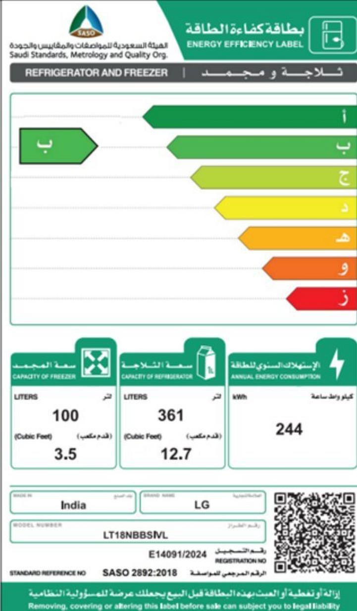 LG Refrigerator 12.7Cu.ft, Freezer 3.5Cu.ft, Smart Inverter Compressor, Silver