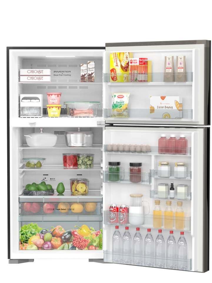 Hitachi Refrigerator 12.9Cu.ft, Freezer 5.1Cu.ft, Inverter Compressor, Brilliant Silver