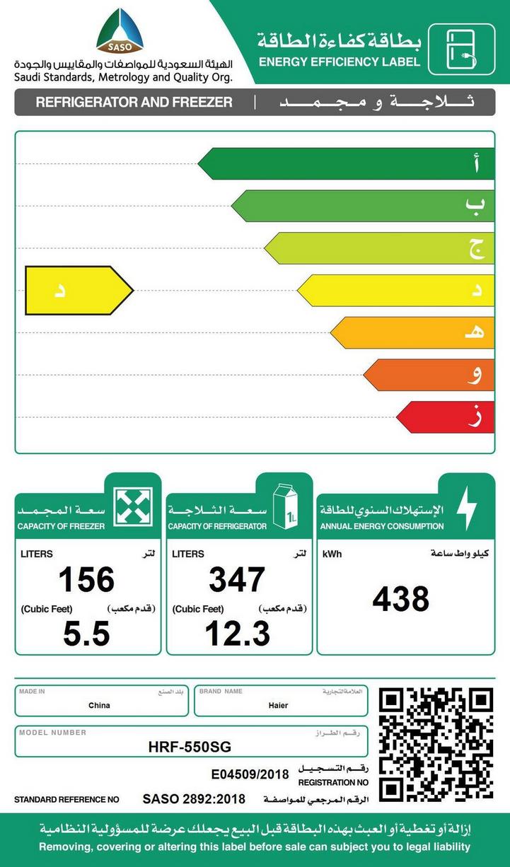 Haier Side by Side 4 Door Refrigerator, 12.3Cu.ft, Freezer 5.5Cu.ft, Inverter, Silver