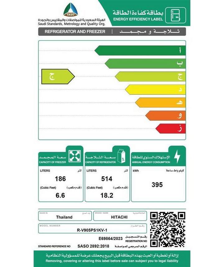 Hitachi, Refrigerator 18.2 Cu.Ft, Freezer 6.6 Cu.ft, Inverter, Silver