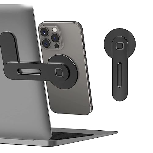 Sulfar Magnetic Phone Holder for Laptop Designed for iPhone 14/13 / 12 Series MagSafe, Adjustable Phone Monitor Side Mount, Slim Portable Foldable Computer Expansion Bracket (Black)