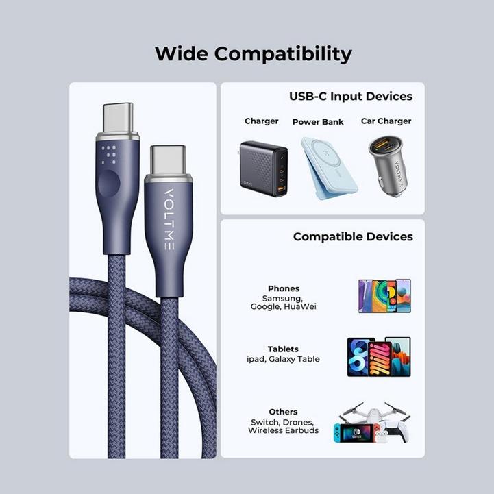 Voltme Moss Series Cable USB-C To USB-C 1m 60W - Blue
