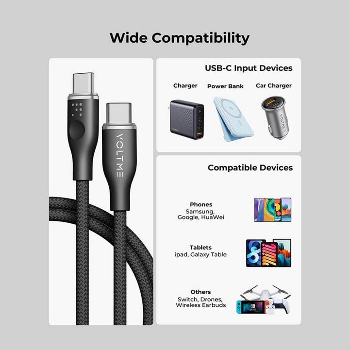 Voltme Moss Series Cable USB-C To USB-C 1m 60W - Black