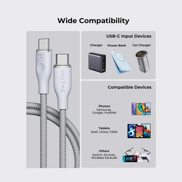 Voltme Moss Series Cable USB-C To USB-C 1m 60W - Grey