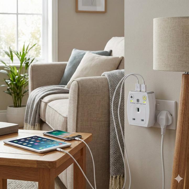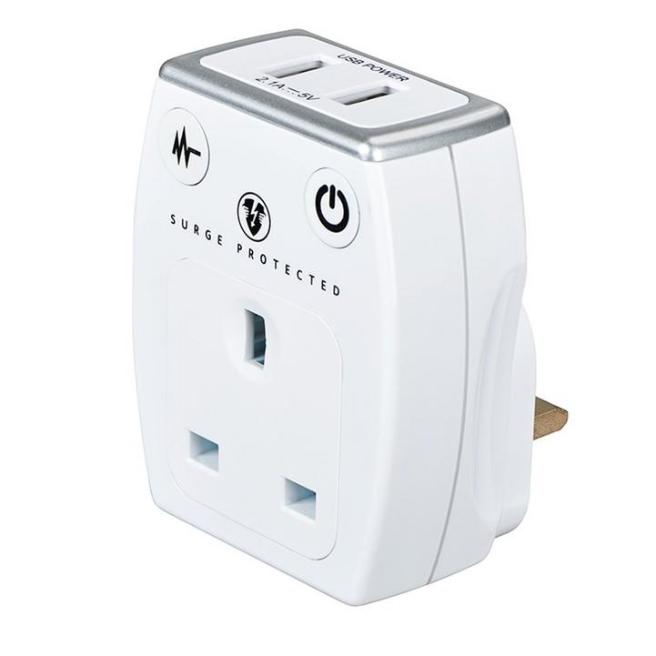 Masterplug, Surge Adaptor With 2 X USB (3.1A), Gloss White