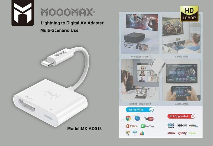 MOOGMAX, Lightning To HDMI Digital AV Adapter, White