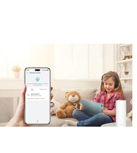 Provides combined speeds up to 3000 Mbps (574 Mbps on 2.4GHz + 2402 Mbps on 5GHz) for smooth streaming, gaming, and video calls. Whole Home Mesh Coverage: Covers up to 200m² per unit, delivering seamless WiFi with automatic roaming across every corner of your home 6 Gigabit Ethernet Ports: Each unit includes 6 high-speed LAN ports for stable wired connections to TVs, PCs, gaming consoles, and more. HarmonyOS Mesh+ Technology: Offers easy one-touch pairing, intelligent network optimization, and stable performance for all connected devices. Connect Up to 250 Devices: Handles multiple users and devices at the same time with consistent performance. Advanced Security & Parental Control: Features WPA3 encryption, guest WiFi, device management, and parental control for a safe and customizable network Easy Setup & App Control: Fast installation and full control through the Huawei AI Life app.