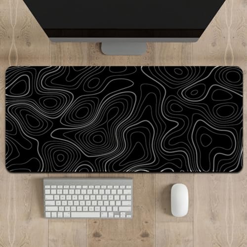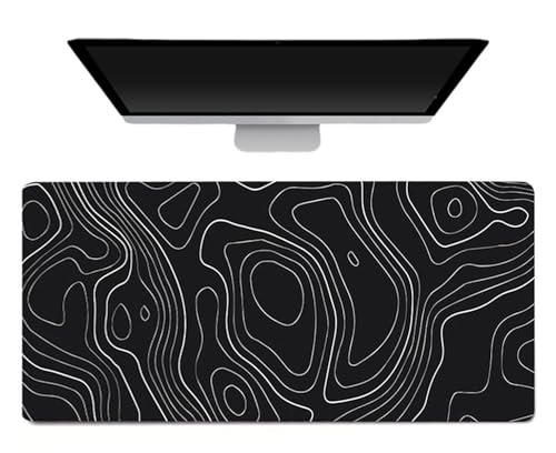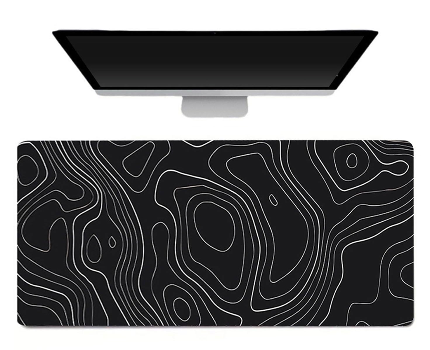 Gaming Mouse Pad XL - 80x30cm Large Mouse Mat with Anti-Slip Rubber Base for Keyboard and Mouse, for Home and Office(Black with White Topographic Line)