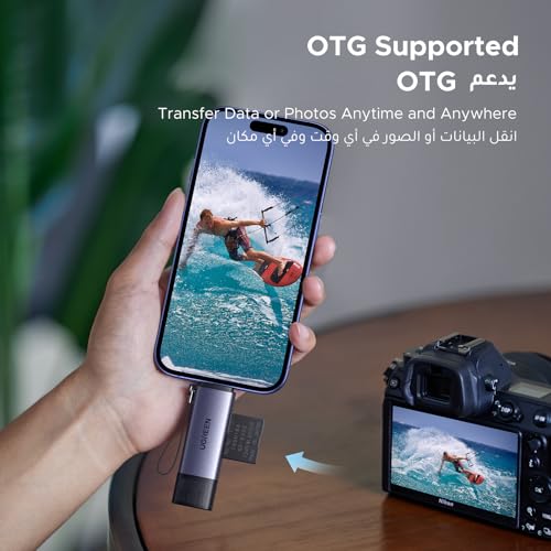 UGREEN SD Card Reader USB 3.0/USB C OTG Dual Slot Memory Card Adapter for iPhone 17 Series,MacBook Pro, M1 M2 Mac Air, iPad, Surface, Dell XPS, Samsung, Huawei