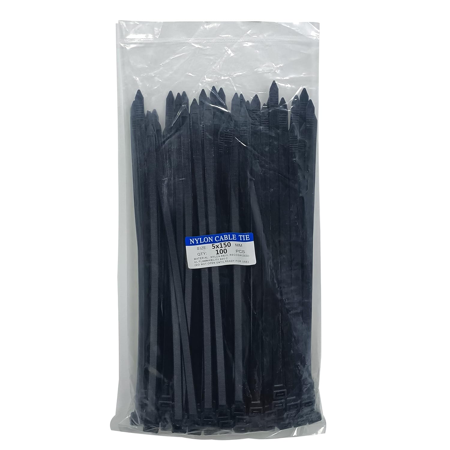 100 pcs 6 inch Cable Zip Ties Heavy Duty, Premium Plastic Wire Ties with 50 LBS Tensile Strength, Self-Locking Black Nylon Cable Tie Wraps Straps for Indoor and Outdoor