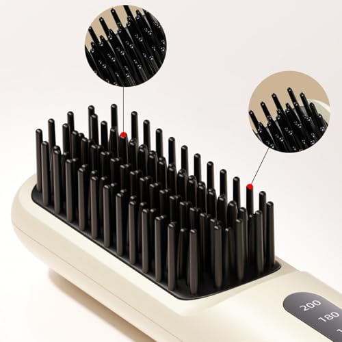 Even Heat Distribution: Equipped with MCH heating technology, the Hair Straightener Brush avoids hot spots, protecting hair health while ensuring styles remain intact throughout busy days or special occasions without frequent reapplication Smart Safety Timer: The cordless hair straightener boasts a thoughtful 15-minute automatic power-off feature, combined with 4 precise temperature settings within 140-200C, offering added protection against accidents during daily routines or when styling in hectic environments Handy to Use: The Hair Straightening Brush is crafted with rounded comb edges and a unique comb structure, allowing users to effortlessly achieve their desired styles; its adaptability to all hair types and unisex appeal ensures consistent performance for everyday use or special events without hassle Wide Applications: With its cordless feature, this hair straightener brush caters to various occasions including travel, festivals, and business trips, offering reliable styling advantages at home or outdoors for enhanced flexibility and user satisfaction Compact and Lightweight: This portable hair straightener features a lightweight build and compact structure, enabling effortless portability. Designed for convenience, it fits seamlessly into any bag, empowering users to maintain their hairstyles while commuting or traveling