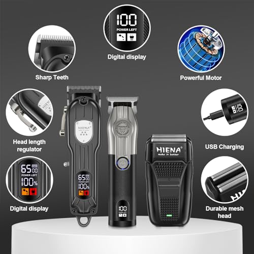 HIENA PRO Hair Clippers Men Cordless for Set Professional Hair Trimmer For Men And Foil Shaver Set Electric Razor for Men Beard Trimmer Men Rechargeable for Barber Clippers Set With LED Display(Black)