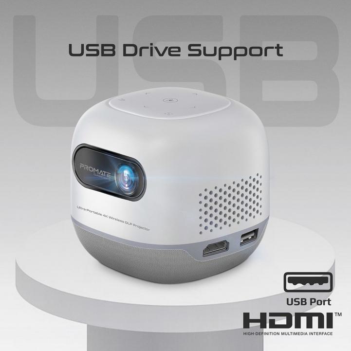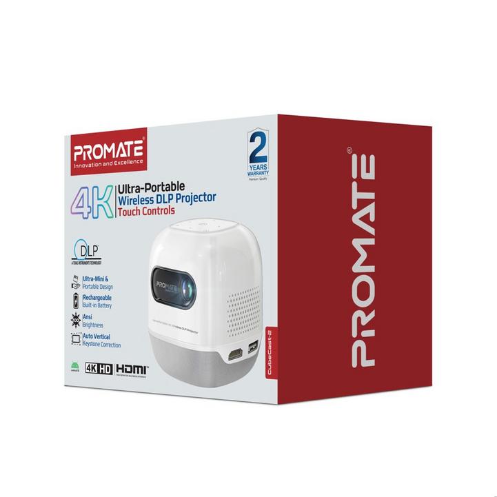 Promate, CubeCast-2, Portable 4K Projector, HD, Wireless Screen Sharing, Bluetooth, Auto Keystone