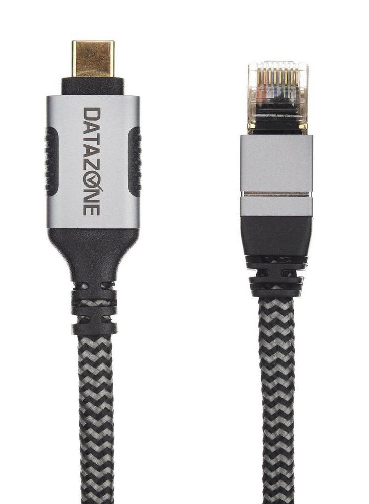 DATAZONE Type C to Ethernet Cable RG45, CAT6A, 3M, Black